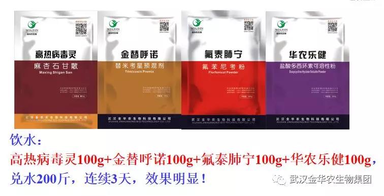 1、【白天控水】,集中4小時(shí)內(nèi)喝完,飲水:高熱病毒靈100克+金替呼諾100克+氟泰肺寧100克+華農(nóng)樂(lè)健100克,兌水200斤,連續(xù)3天,效果明顯!