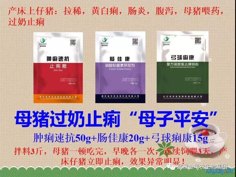 產(chǎn)床上仔豬:拉稀,黃白痢,腸炎,腹瀉,母豬喂藥,過(guò)奶止痢:腫痢速抗50g+腸佳康20g+弓球痢康15g,拌料3斤,母豬一頓吃完,早晚各一次,連續(xù)飼喂3天,產(chǎn)床仔豬立即止痢,效果異常明顯!