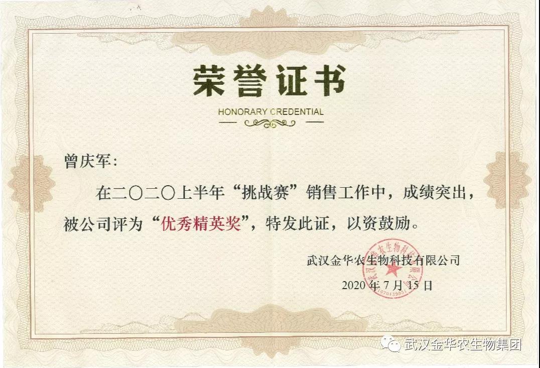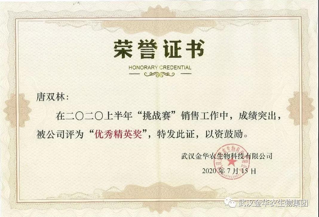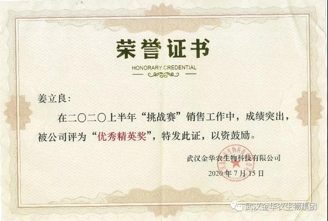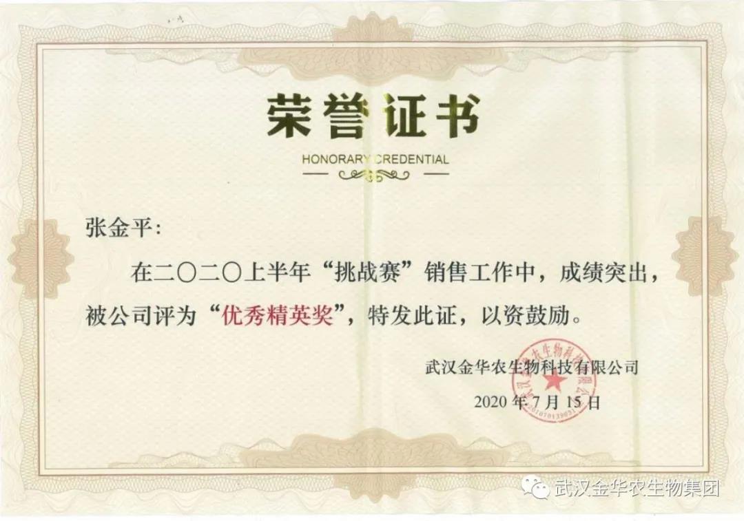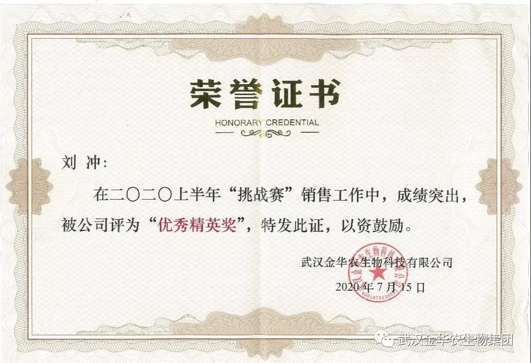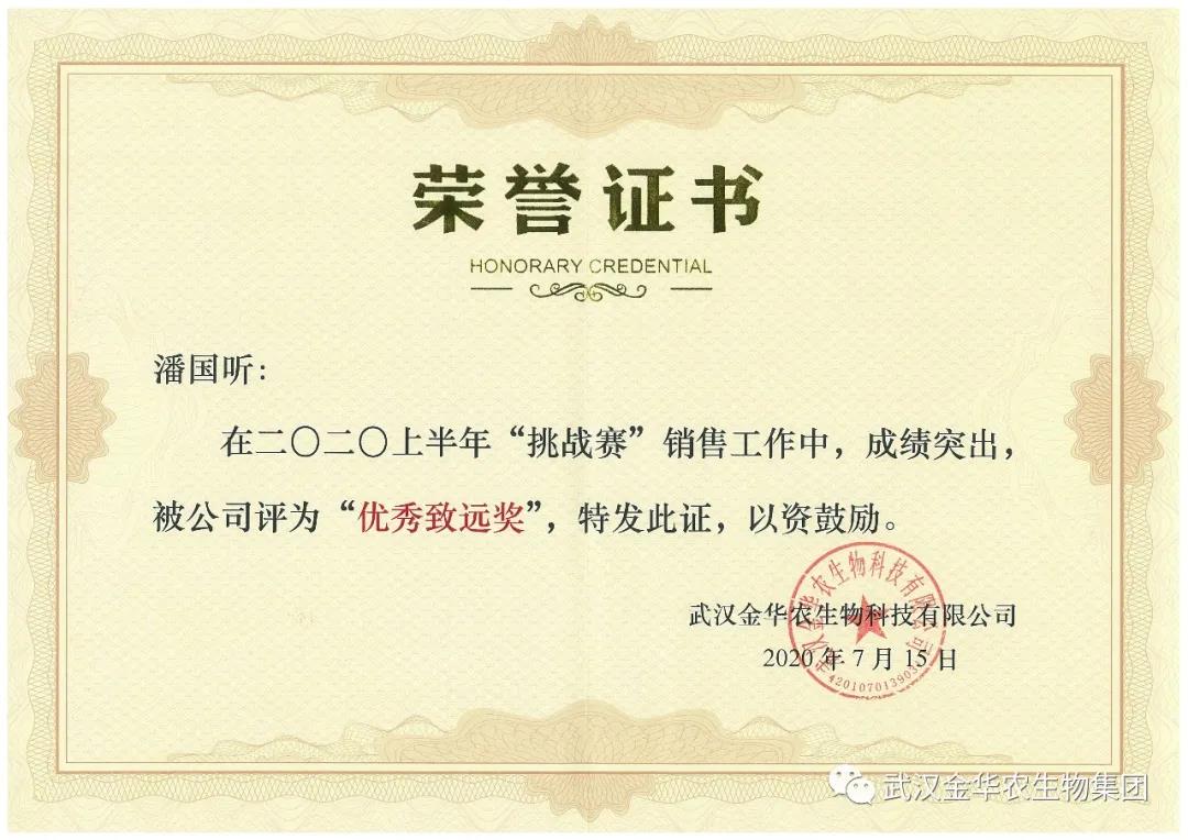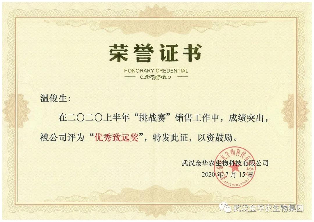 武漢金華農(nóng)生物2020年“挑戰(zhàn)賽”獲獎(jiǎng)名單公布