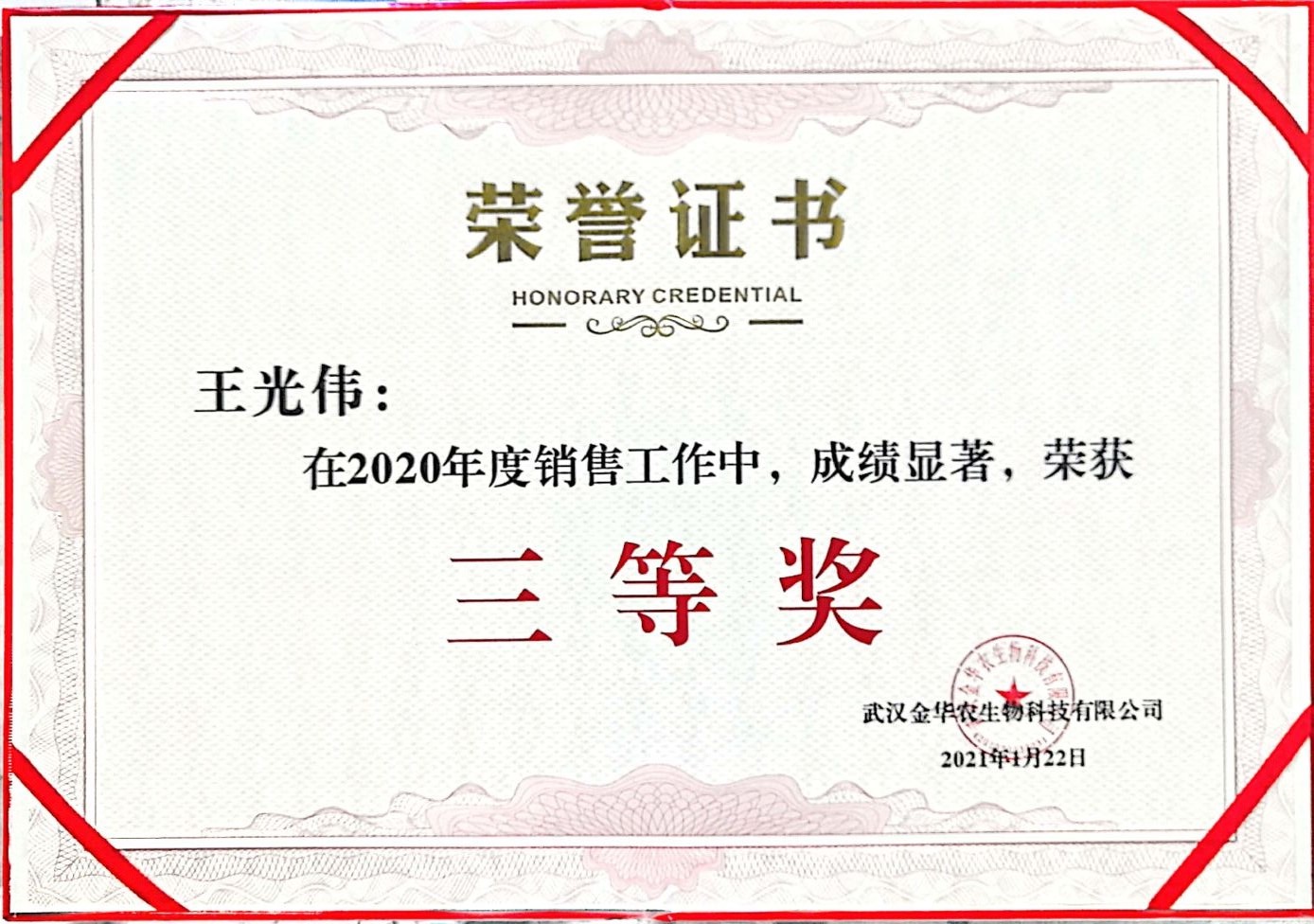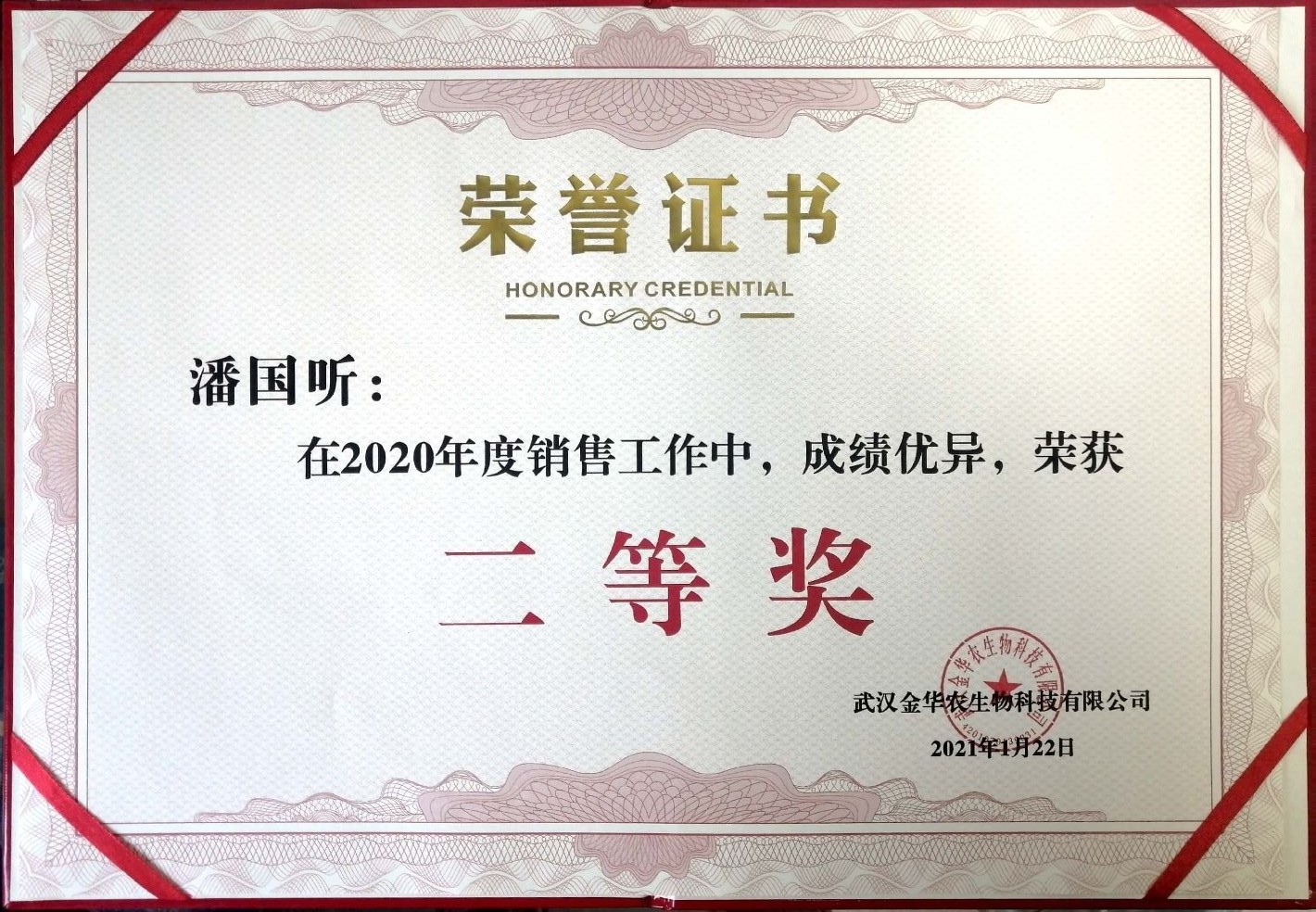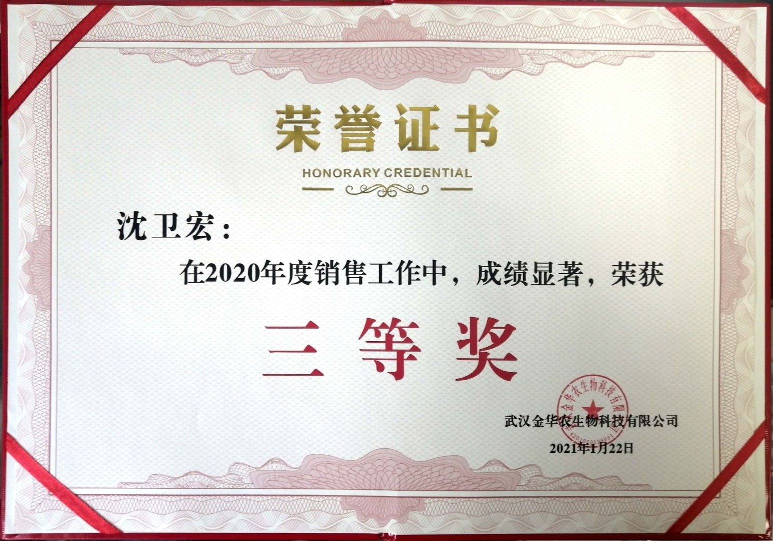 武漢金華農(nóng)生物2020年度銷售業(yè)績優(yōu)秀表彰獲獎名單