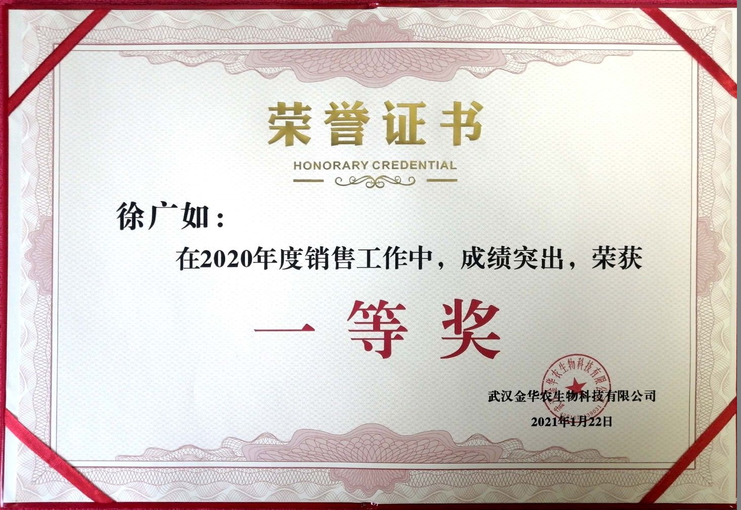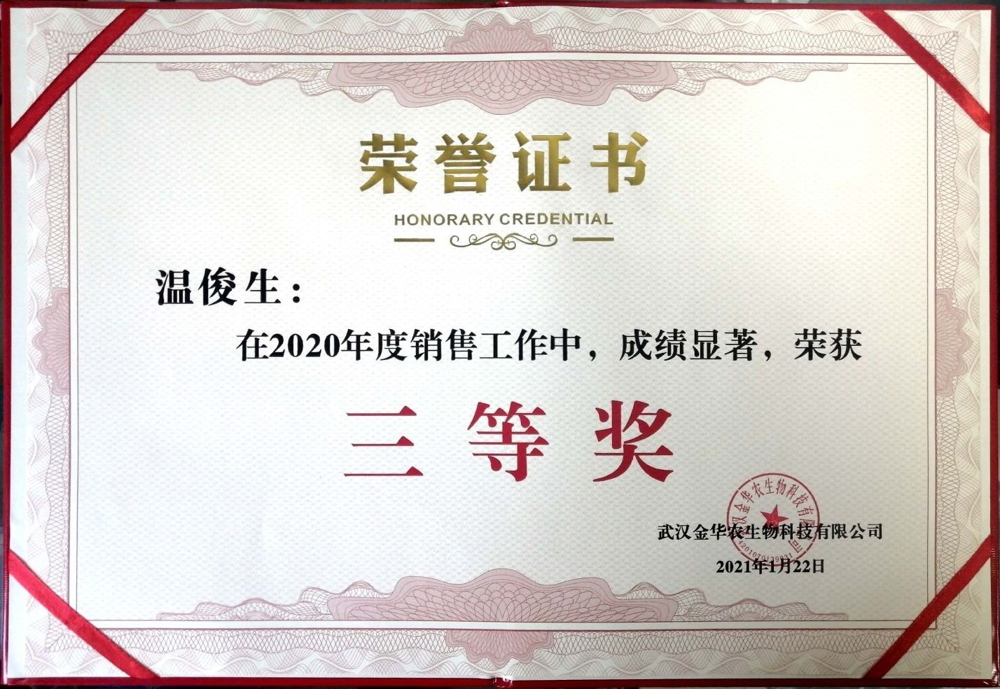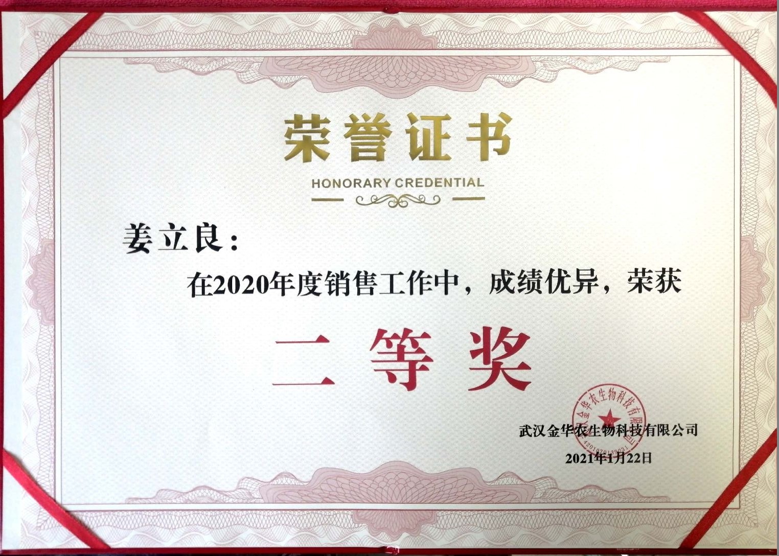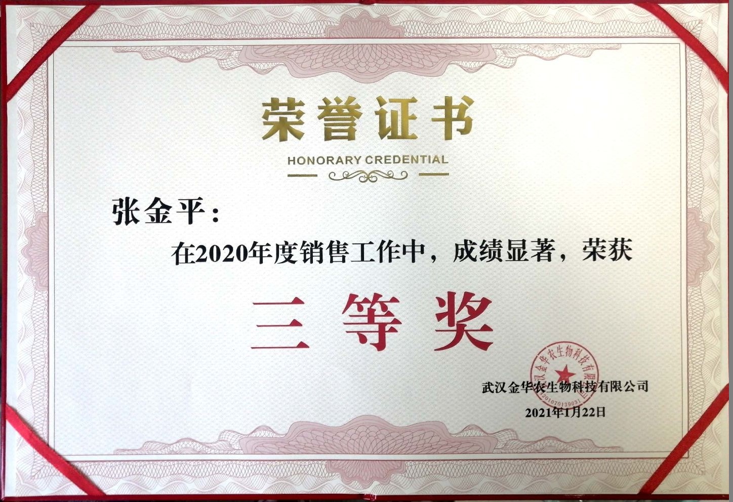 武漢金華農(nóng)生物2020年度銷售業(yè)績優(yōu)秀表彰獲獎名單
