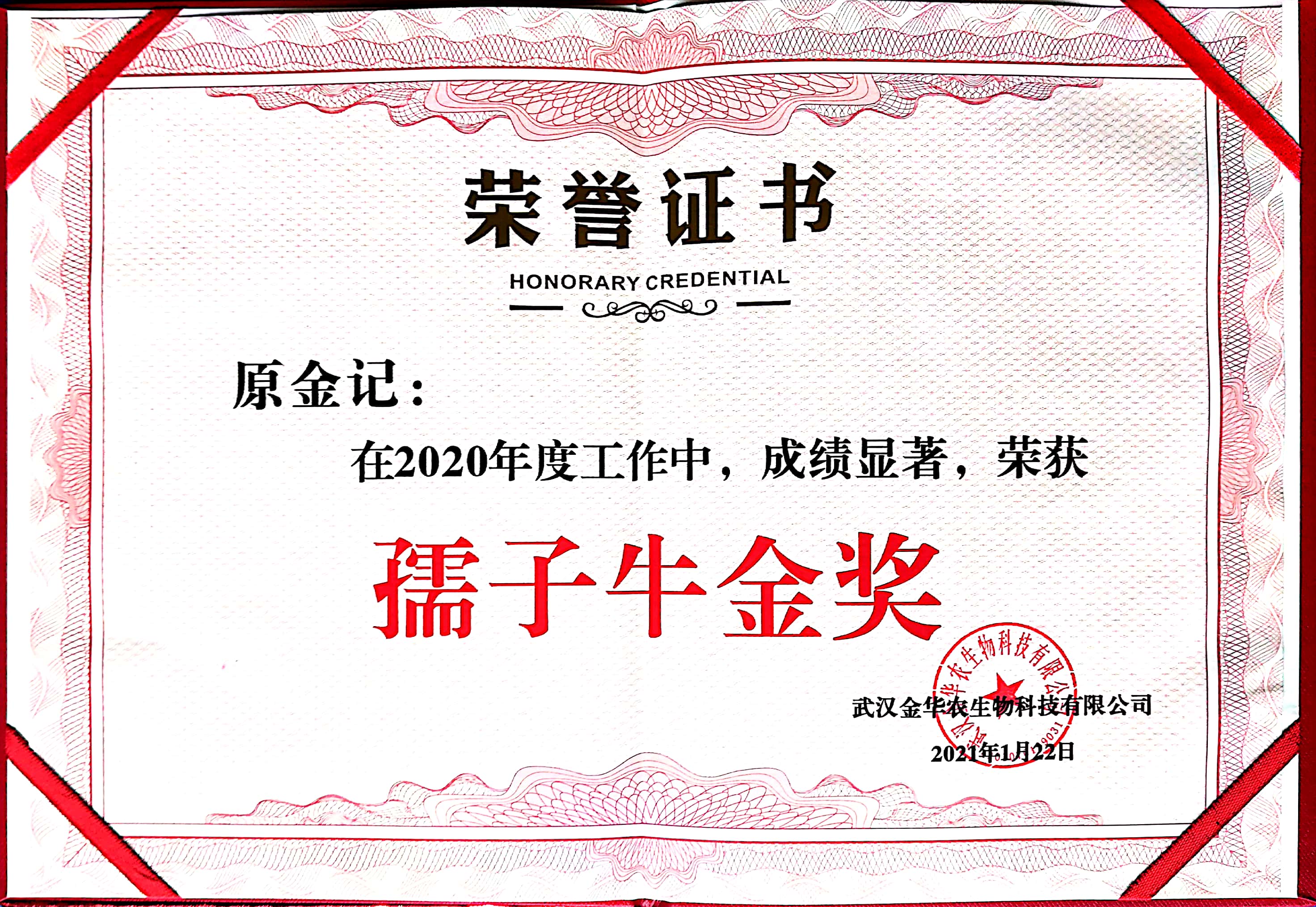 ? ? 祝賀技術(shù)部原金記老師,他在2020年積極行動,服務(wù)于一線市場,在本次2020年度表彰活動中榮獲“孺子金牛獎”,他與各區(qū)經(jīng)理一起堅守于一線,服務(wù)于一線,他十分優(yōu)秀,是全體武漢金華農(nóng)人學(xué)習(xí)的榜樣!2020年圓滿收官,期待他2021年繼續(xù)奮斗!為他喝彩!為他鼓掌!