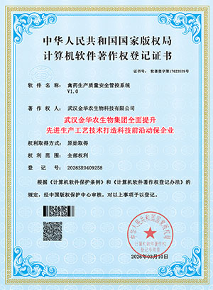 喜訊,2026年3月20日,武漢金華農(nóng)生物獲得國(guó)家頒發(fā)三項(xiàng)“先進(jìn)生產(chǎn)工藝技術(shù)”軟件著作版權(quán)保護(hù)專利證書(shū),公司在畜禽獸藥、水產(chǎn)漁藥、飼料添加劑等板塊,2026年全面提升生產(chǎn)工藝技術(shù),應(yīng)用先進(jìn)生產(chǎn)技術(shù),干擾素包膜技術(shù),超微粉碎技術(shù),微晶顆粒旋轉(zhuǎn)技術(shù),長(zhǎng)效緩釋技術(shù),通過(guò)新的生產(chǎn)工藝和生產(chǎn)技術(shù)發(fā)明專利,進(jìn)一步增強(qiáng)畜禽獸藥和水產(chǎn)動(dòng)保的療效!打造前沿科技創(chuàng)新領(lǐng)導(dǎo)品牌!