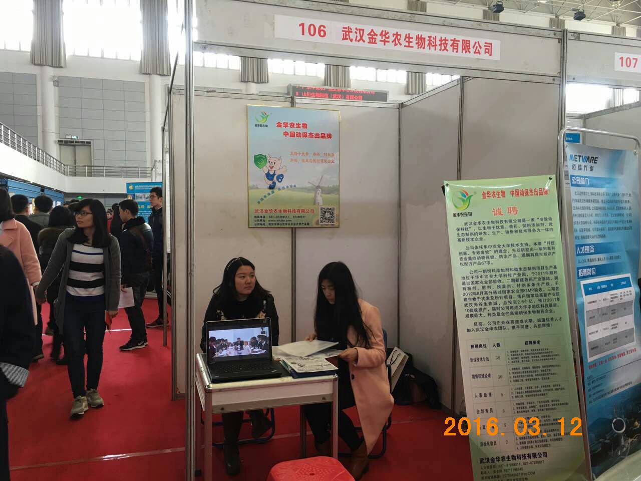 2016年3月12日,由湖北省高校畢業(yè)生就業(yè)指導(dǎo)服務(wù)中心和華中農(nóng)業(yè)大學(xué)共同舉辦的2016屆畢業(yè)生春季供需見面會在學(xué)校體育館舉行,5000余名高校學(xué)子參加了現(xiàn)場見面會。武漢金華農(nóng)生物應(yīng)邀參加,攜8大種類共66個崗位高校攬才。