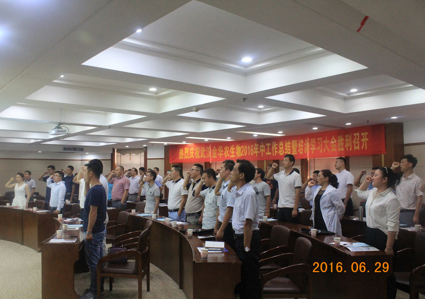 6月28日至30日,武漢金華農(nóng)生物科技有限公司2016年上半年工作總結(jié)暨培訓(xùn)學(xué)習(xí)會議在華中農(nóng)業(yè)大學(xué)國際學(xué)術(shù)交流中心勝利召開,來自全國18個省級區(qū)域的代表,帶著時間過半、任務(wù)超半的優(yōu)秀業(yè)績參加了會議。