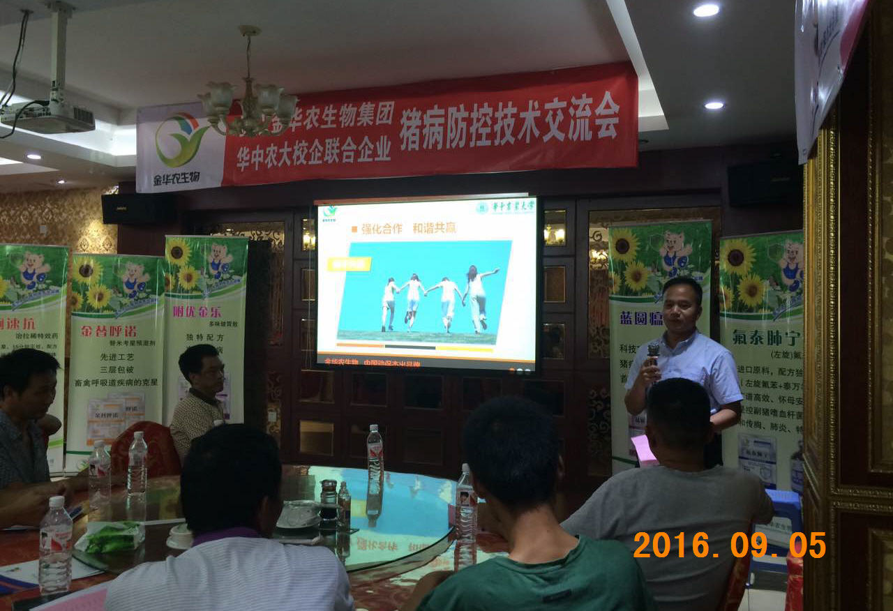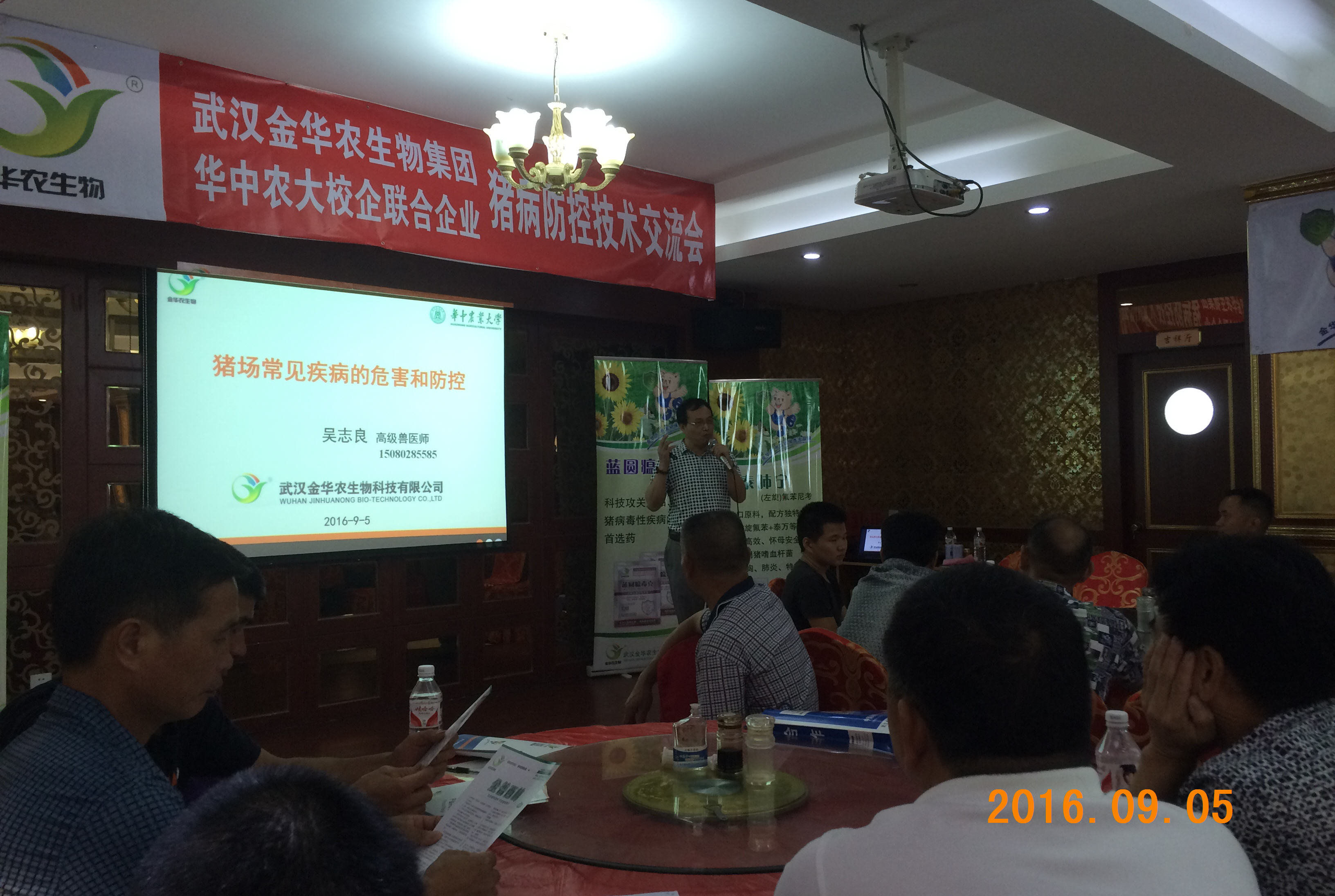 2016年9月5-6日,武漢金華農(nóng)生物科技有限公司“夏秋季常見易發(fā)豬病研討會”在福建南平勝利召開,按公司預(yù)定計(jì)劃、陸續(xù)在全國重點(diǎn)省內(nèi)全面展開。公司常務(wù)副總經(jīng)理徐巍博士、公司運(yùn)營部主管李名娥老師等人出席本次會議,會議主講由公司技術(shù)部吳志良老師領(lǐng)銜主講,南平地區(qū)戰(zhàn)略合作伙伴魏總負(fù)責(zé)會議主持、組織與策劃,南平地區(qū)大區(qū)經(jīng)理張老師負(fù)責(zé)會前會后全程跟蹤與回訪。