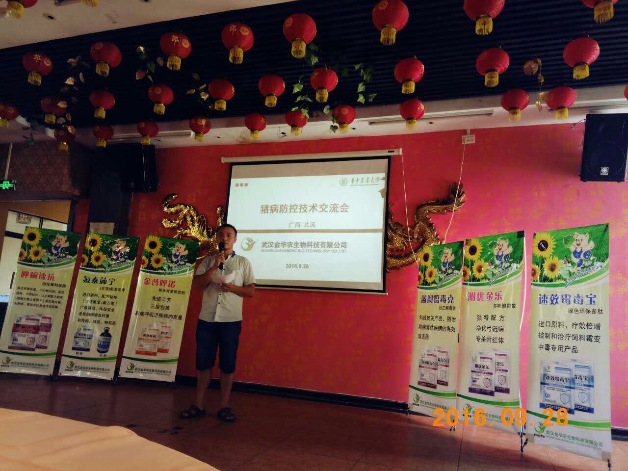 9月27-28日,公司廣西市場“秋冬季豬病防控研討會”勝利召開!本次會議由公司領(lǐng)導常務(wù)副總徐巍博士做企業(yè)介紹及公司“一三五”戰(zhàn)略發(fā)展規(guī)劃,公司技術(shù)部唐友琦老師主講,玉林北流地區(qū)負責人曹玉廣經(jīng)理策劃與組織?,F(xiàn)場客戶40多人參加會議,雖然很多都是新客戶,但是使用武漢金華農(nóng)產(chǎn)品后,都覺得產(chǎn)品質(zhì)量過硬,臨床效果十分顯著,豬病技術(shù)服務(wù)十分優(yōu)秀,會議最后大家激情都很高,贏得一片片喝彩掌聲,會議取得良好的效果,當場收現(xiàn)金7萬多元,預(yù)計后期拜訪總銷量達12萬以上!祝賀優(yōu)秀新人-曹玉廣經(jīng)理首戰(zhàn)告捷!