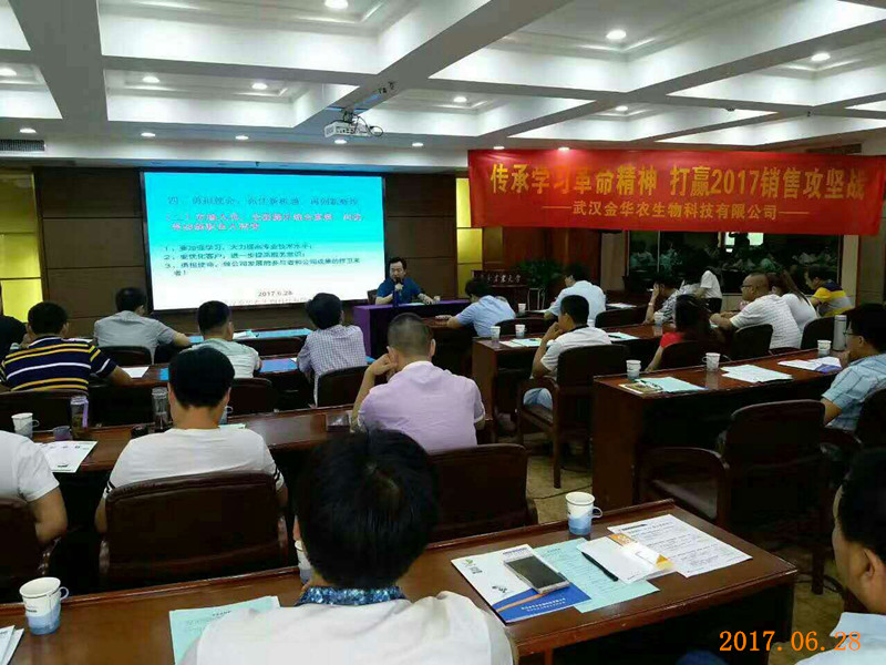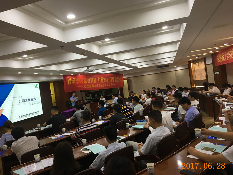 6月27日至30日,武漢金華農(nóng)生物科技有限公司2017年上半年工作總結(jié)暨下半年工作部署會(huì)議,在華中農(nóng)業(yè)大學(xué)成功召開。來自全國各地的精英代表,齊聚獅子山下,向公司交上滿意的業(yè)績單。截止今年6月底,公司業(yè)績實(shí)現(xiàn)16.2%的增幅,銷售額達(dá)近五年來同期新高。