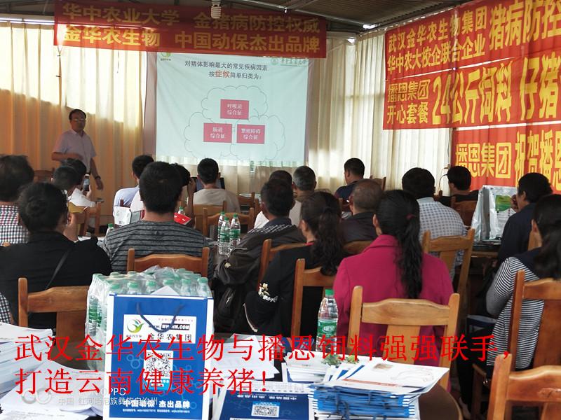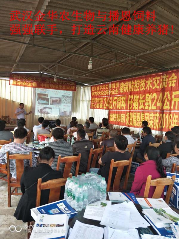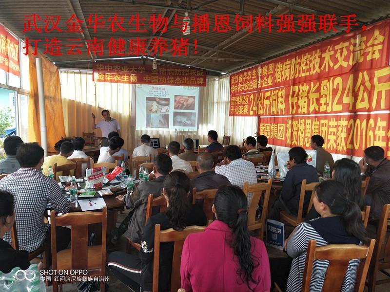 2018年6月25日,武漢金華農(nóng)生物制藥與云南播恩飼料集團,強強聯(lián)手,戰(zhàn)略互信,友好合作,互惠雙贏,服務廣大省內(nèi)畜牧養(yǎng)豬戶,打造云南健康養(yǎng)豬生態(tài)產(chǎn)業(yè)鏈第一品牌!武漢金華農(nóng)生物集團聯(lián)合華中農(nóng)業(yè)大學豬病權威專家教授,結合云南養(yǎng)豬地域性的實際情況,于本月25日、28日、30日,連續(xù)舉辦3場送“科技下鄉(xiāng)豬病研討會”,打造云南養(yǎng)豬特色服務產(chǎn)業(yè)生態(tài)鏈條,為廣大養(yǎng)豬戶排憂解難,為廣大養(yǎng)豬戶保駕護航!