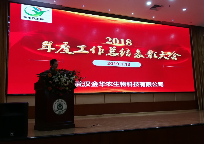 2019年1月12日~16日,武漢金華農(nóng)生物2018年工作總結(jié)暨表彰大會(huì),在華中農(nóng)業(yè)大學(xué)隆重召開,學(xué)校院系領(lǐng)導(dǎo)、農(nóng)業(yè)廳領(lǐng)導(dǎo)、畜牧局領(lǐng)導(dǎo)、博士生導(dǎo)師、教授專家、公司高層、全國(guó)21個(gè)省市的精英代表齊聚盛會(huì),120人創(chuàng)業(yè)團(tuán)隊(duì)總結(jié)經(jīng)驗(yàn)、表彰先進(jìn)、規(guī)劃未來(lái)。