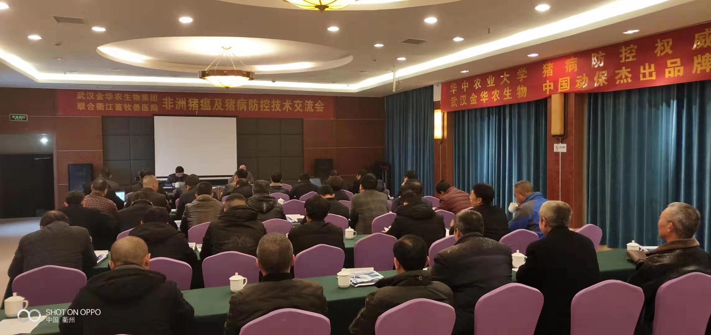2019年3月3日,武漢金華農(nóng)生物集團(tuán)“第3場”《非洲豬瘟暨春季豬病防控研討會 》在浙江衢江地區(qū)勝利召開!本次會議受到浙江衢江畜牧局的大力支持與高度肯定!聽課豬場人數(shù)70多人,會議達(dá)到預(yù)期目的,豬病知識授課圓滿,養(yǎng)豬戶學(xué)習(xí)積極認(rèn)真。公司市場運營部郭昌盛老師參加本次會議,技術(shù)部吳志良老師負(fù)責(zé)主講,大區(qū)負(fù)責(zé)人張志龍經(jīng)理負(fù)責(zé)組織與策劃。