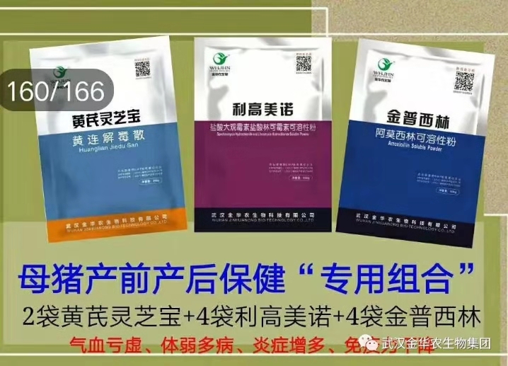 母豬產(chǎn)后,氣血虧虛、體弱多病、免疫力下降、肌肉損傷較大,泌尿生殖道炎癥明顯增多,不發(fā)情,配不上,返情率高,產(chǎn)生免疫抑制及產(chǎn)后綜合應(yīng)激癥,母豬產(chǎn)前產(chǎn)后保健專用組合:黃芪靈芝寶1000 g +利高美諾500 g +金普西林500 g,拌料1000斤,連續(xù)飼喂5-7天,治療明顯,效果突出,受到在場的養(yǎng)豬戶的一直認可和贊美!