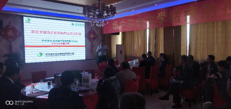 2019年4月8日,武漢金華農(nóng)生物集團(tuán)應(yīng)安徽省六安畜牧獸醫(yī)局的邀請(qǐng),在六安地區(qū)舉辦“非洲豬瘟的防控措施”暨“規(guī)?;i場(chǎng)常見病的預(yù)防與治療”豬病研討學(xué)習(xí)會(huì)議,此次會(huì)議非常成功,參加會(huì)議養(yǎng)殖場(chǎng)60家,養(yǎng)豬戶熱情十分高漲,學(xué)習(xí)積極踴躍,非瘟知識(shí)普及到位,豬病防控與治療宣傳深入,會(huì)議取得很好的效果。