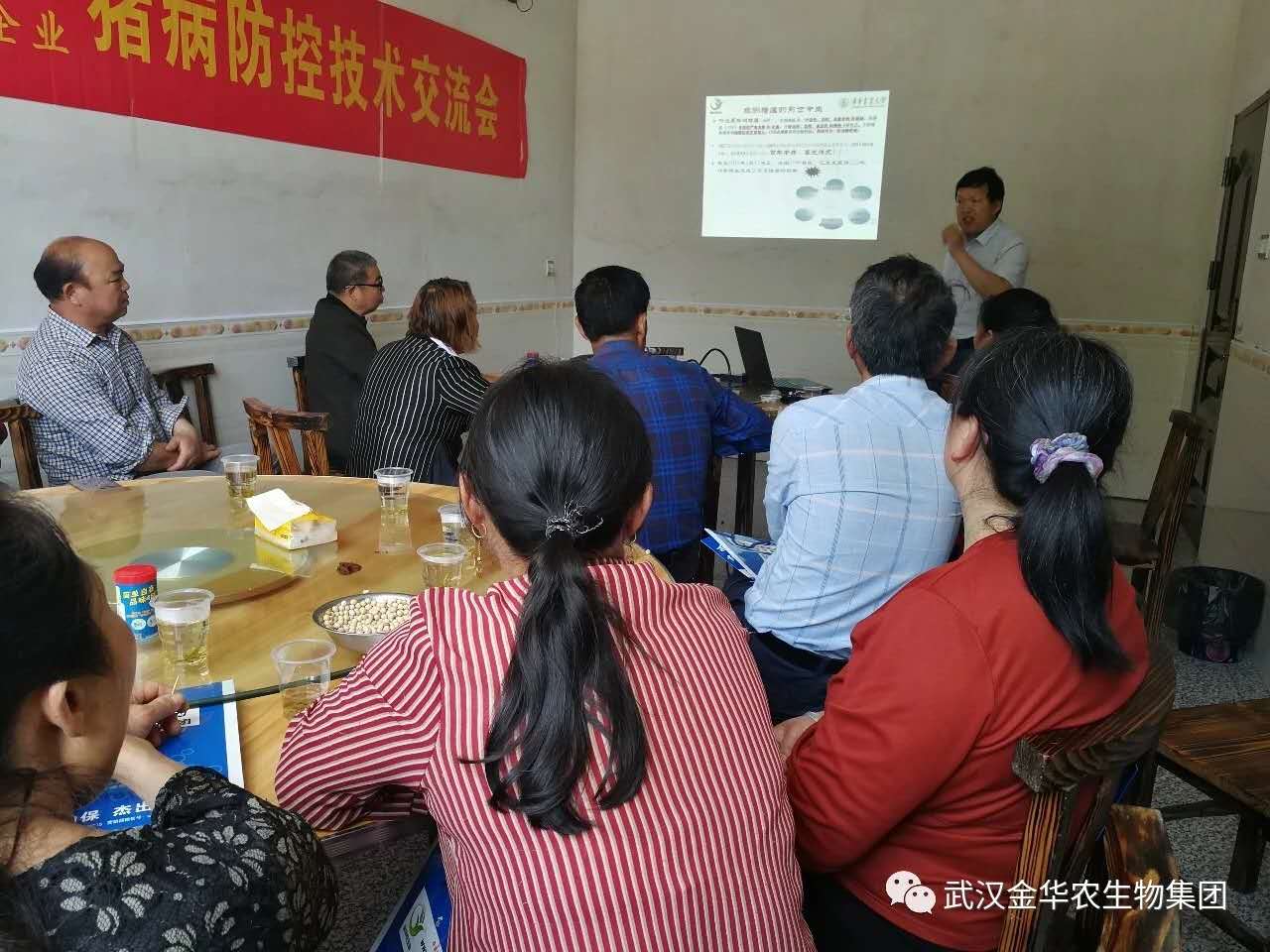 2019年4月25日,武漢金華農(nóng)生物集團(tuán)應(yīng)湖南衡陽(yáng)畜牧局主管單位邀請(qǐng),在湖南衡陽(yáng)湘鄉(xiāng)區(qū)域成功舉辦豬病圓桌交流會(huì)議,與會(huì)養(yǎng)豬戶30家,反饋效果明顯,現(xiàn)場(chǎng)訂貨積極,會(huì)議氣氛友好而熱烈。畜牧局領(lǐng)導(dǎo)李局長(zhǎng)對(duì)這次科技下鄉(xiāng)活動(dòng)十分重視,湖南衡陽(yáng)當(dāng)?shù)貞?zhàn)略合作伙伴錢總出席參加本次會(huì)議。