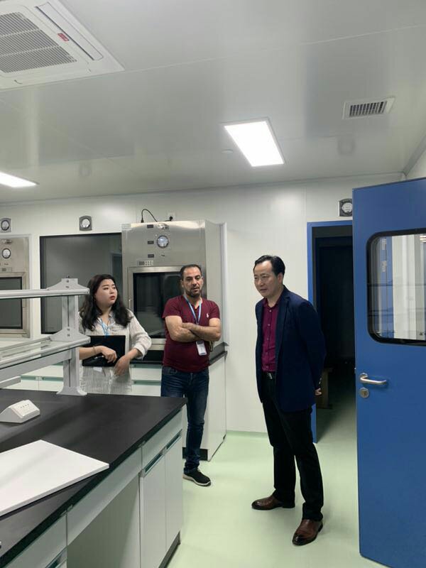 公司領(lǐng)導富勝總經(jīng)理、行政總監(jiān)李博士、新獸藥研發(fā)陳博士、項目總監(jiān)黃凡、工廠建設(shè)副總李良明一行5人來到武漢光谷生物城“中國~約旦”中約合資制藥企業(yè)進行參觀考察,交流互信,資源技術(shù)應(yīng)用整合,就國外先進生產(chǎn)工藝、國際領(lǐng)先生產(chǎn)流程,展開會談,為后續(xù)我公司新項目、新工廠的建設(shè)起到關(guān)鍵的作用!武漢金華農(nóng)生物制藥集團已經(jīng)吹響“科技革命的號角”,發(fā)起邁向國際化生物制藥領(lǐng)先水平,新建工廠將使用國際領(lǐng)先工藝和新獸藥理念,后續(xù)強勁發(fā)展將遠遠領(lǐng)先于國內(nèi)其他生產(chǎn)廠家。
