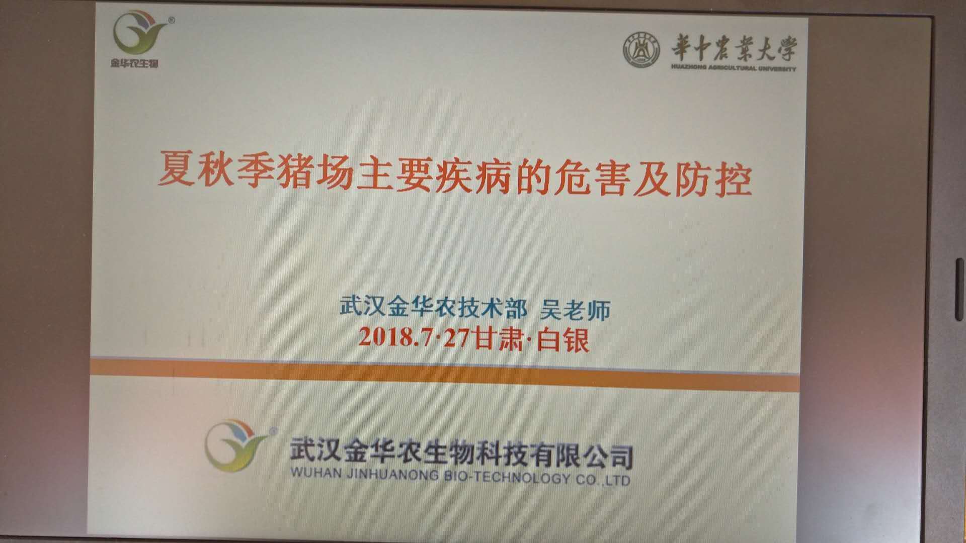 7月27日,武漢金華農(nóng)生物科技有限公司在甘肅省白銀市如期舉辦“夏秋季豬病防控交流會”,會議很成功,取得巨大成績,于28日圓滿謝幕。本次會議由公司戰(zhàn)略合作伙伴馬總、李總負責(zé)組織和策劃,技術(shù)部吳老師主講,甘肅大區(qū)田經(jīng)理主持會議。