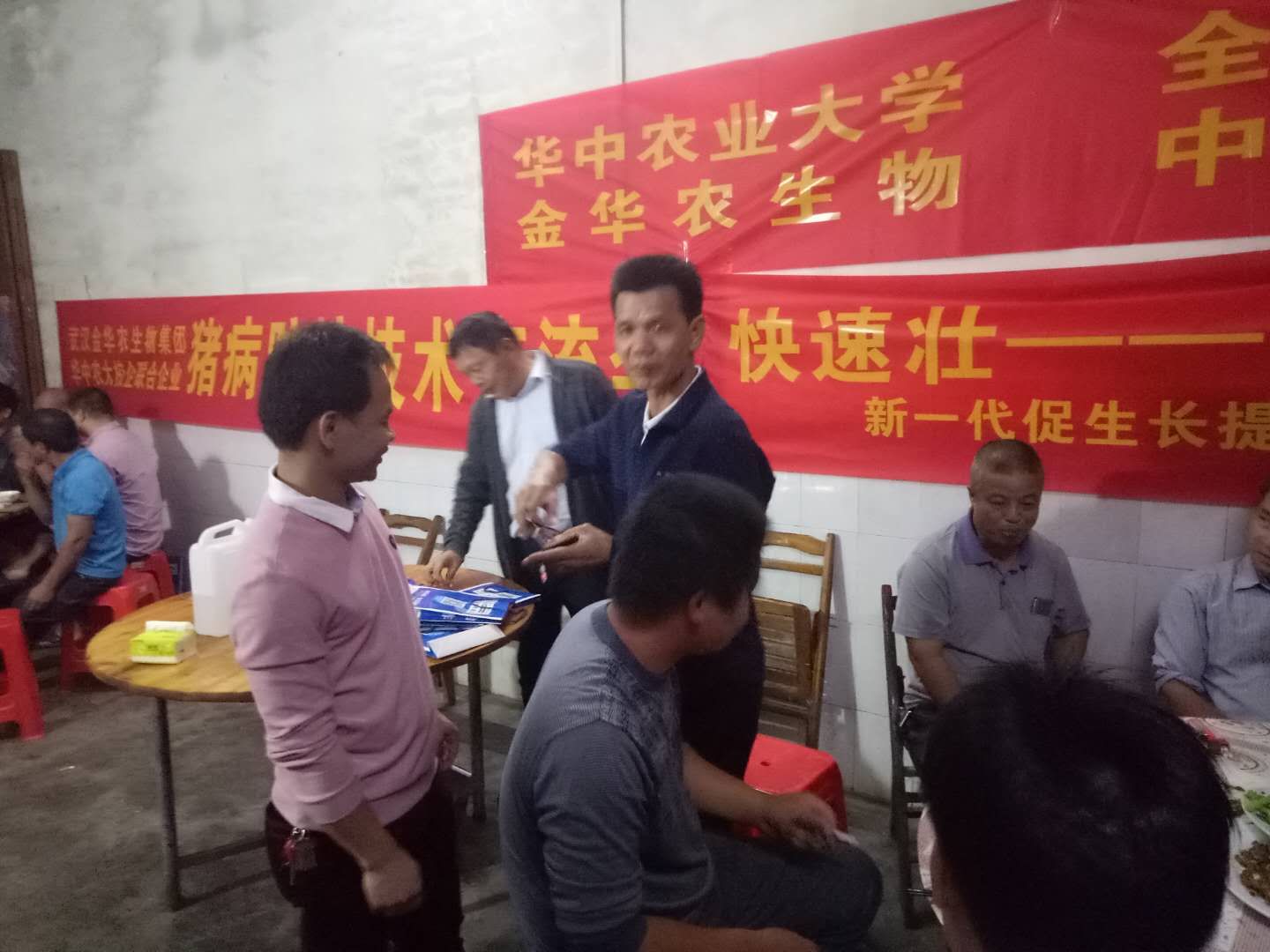 2018年10月16~18日,武漢金華農(nóng)生物集團(tuán)“廣西專屬圓桌會議”連續(xù)3場在廣西玉林博白地區(qū)拉開帷幕,此次連續(xù)3場圓桌會議,形式多樣,內(nèi)容新穎,學(xué)習(xí)輕松,接地氣交流,養(yǎng)豬戶效果反饋明顯。公司廣西辦事處龐總負(fù)責(zé)組織、策劃和宣傳,技術(shù)部原老師主講和技術(shù)跟蹤服務(wù),區(qū)域銷售陸經(jīng)理、劉經(jīng)理、鄧經(jīng)理參加本次會議,并負(fù)責(zé)區(qū)域銷售計劃的落實。第一場會議聽課豬場老板50多人,會議達(dá)到預(yù)期目的,豬病知識授課圓滿,養(yǎng)豬戶學(xué)習(xí)積極認(rèn)真。