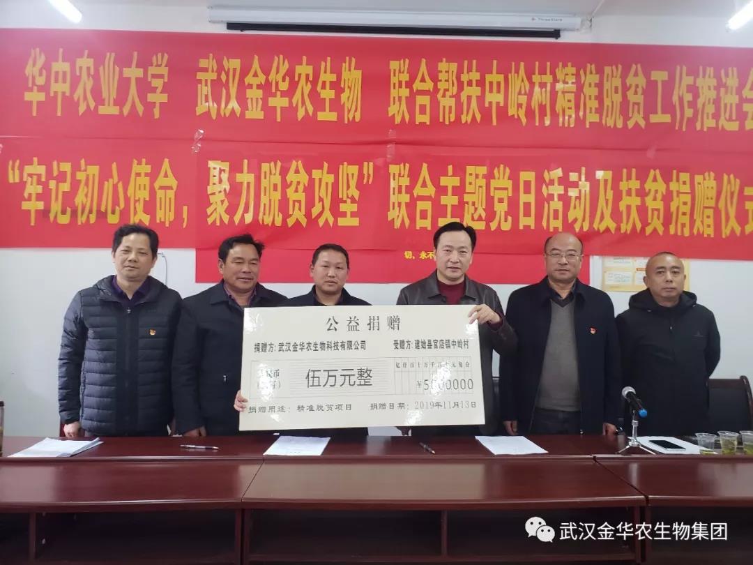 武漢金華農(nóng)生物集團(tuán)公司在企業(yè)發(fā)展中,始終不忘“三農(nóng)”初心,牢記“創(chuàng)新動(dòng)??萍?、引領(lǐng)行業(yè)健康、振興民族品牌”使命,做有社會(huì)責(zé)任有歷史擔(dān)當(dāng)?shù)男聲r(shí)代企業(yè)。多年來(lái),在爭(zhēng)創(chuàng)一流動(dòng)保企業(yè)的轉(zhuǎn)型升級(jí)奮進(jìn)中,仍堅(jiān)持向涉農(nóng)高校、農(nóng)科院所、貧困山區(qū)貢獻(xiàn)企業(yè)愛(ài)心,捐資助學(xué)助教、幫扶貧困山區(qū),助力農(nóng)業(yè)科技振興及脫貧攻堅(jiān)。