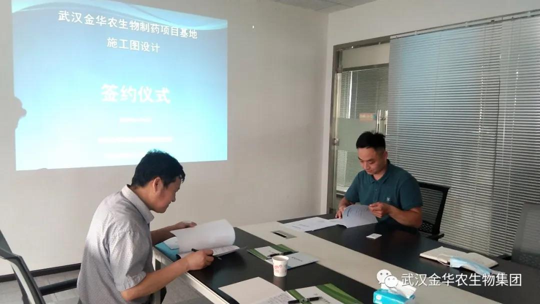 6月9日,武漢金華農(nóng)生物制藥投資3億元新項(xiàng)目基地施工設(shè)計(jì)簽約儀式在光谷生物城舉行。公司項(xiàng)目總監(jiān)黃凡、企劃部經(jīng)理趙方佳、合作方首席設(shè)計(jì)師團(tuán)隊(duì)共同出席此次簽約儀式。