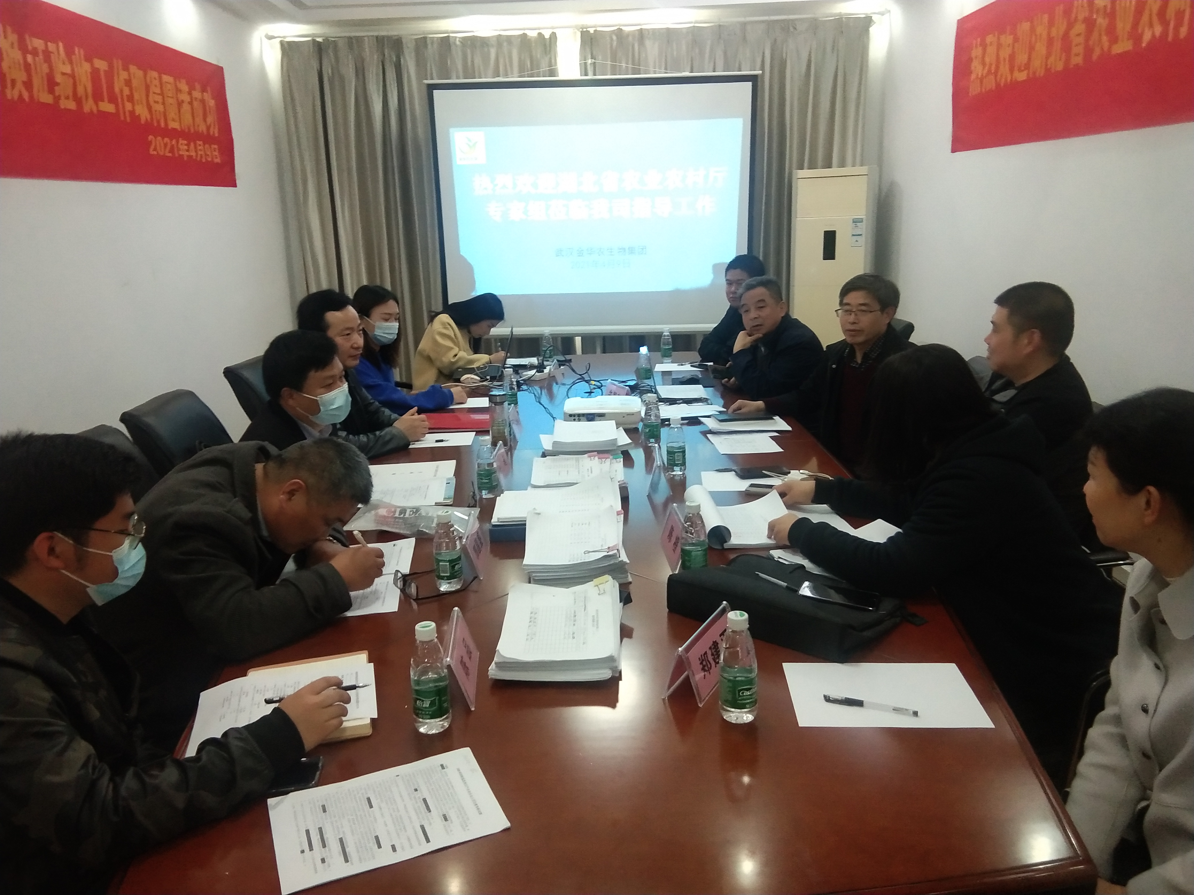 ▲驗(yàn)收通過,湖北省農(nóng)業(yè)農(nóng)村廳領(lǐng)導(dǎo)、武漢金華農(nóng)生物公司領(lǐng)導(dǎo),親切握手,合影留念