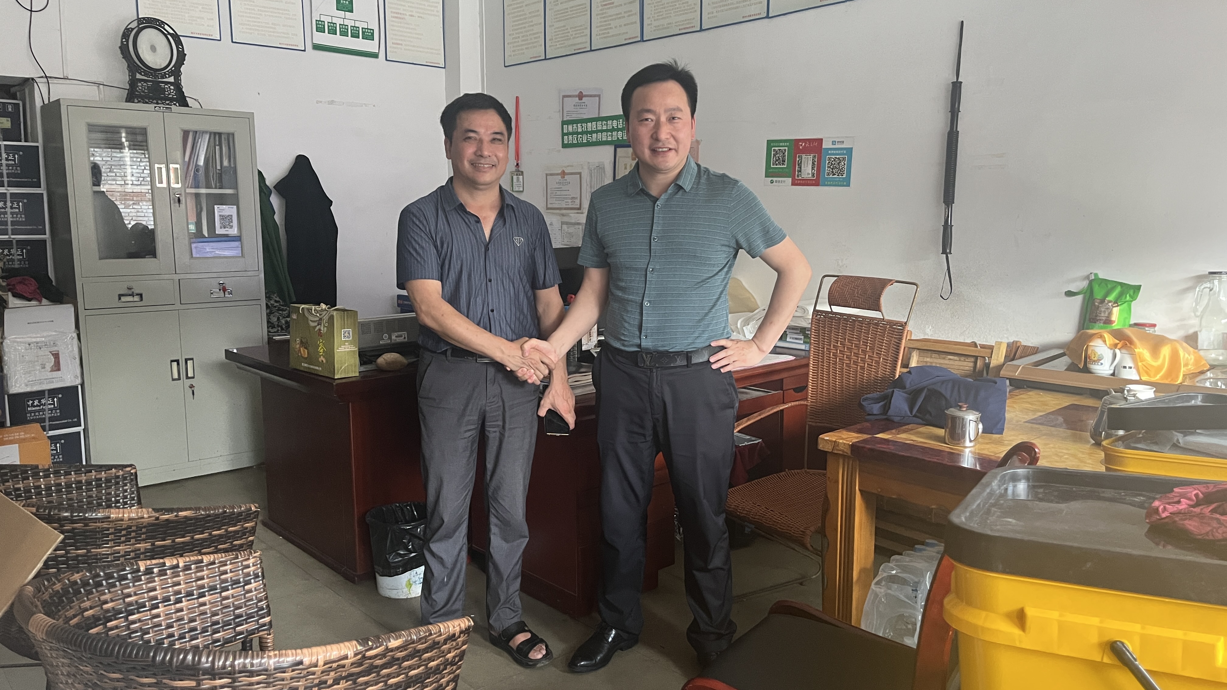 ? ? 近日,公司董事長(zhǎng)富勝帶隊(duì)前往江西開(kāi)展了“市場(chǎng)調(diào)研與考察工作”,親臨視察武漢金華農(nóng)生物集團(tuán)駐江西家禽市場(chǎng)辦事處工作開(kāi)展情況。公司運(yùn)營(yíng)總監(jiān)郭昌盛、行政辦付謙主任、市場(chǎng)部宋博、企劃部李丹彤一行陪同出席調(diào)研考察,受到江西家禽市場(chǎng)辦事處溫老師和團(tuán)隊(duì)的熱情迎接與招待!