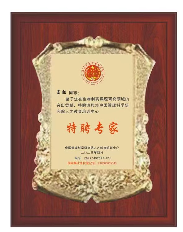 中國科學研究院“動物營養(yǎng)”榮譽證書