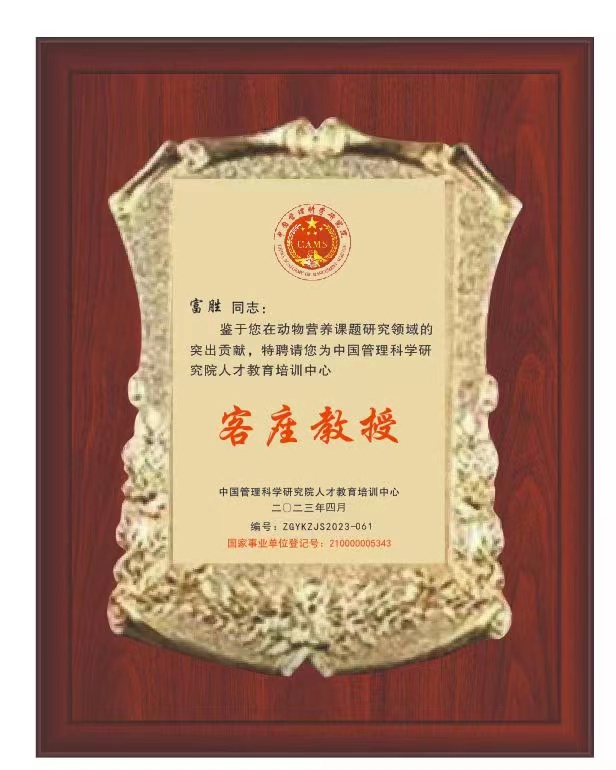 中國科學(xué)研究院“動物營養(yǎng)”榮譽證書