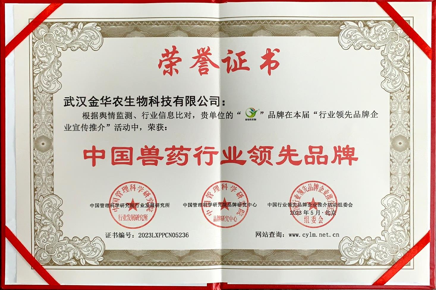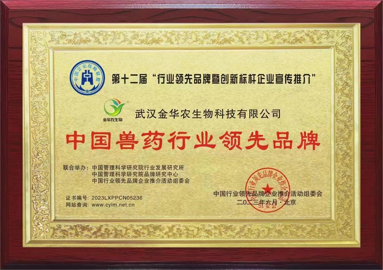 卯兔年未過半,武漢金華農(nóng)已迎來諸多利好消息。公司業(yè)績突飛猛進,銷量翻番;公司獲得省農(nóng)業(yè)農(nóng)村廳第一批新版GMP獸藥文號、飼料添加劑45個新品種批號;公司憑借專業(yè)技術、創(chuàng)新發(fā)展、高效服務,被國家信用平臺、品牌強國計劃評選為“獸藥飼料添加劑行業(yè)典范企業(yè)”。近日,公司又在中國科學研究院組織的全國自主品牌研發(fā)、科研創(chuàng)新產(chǎn)品、質量品控管理、高校產(chǎn)學研基地建設的評選活動中,經(jīng)嚴格篩選,層層選拔,考核評比,監(jiān)督審查,被中國科學研究院組委會授予“中國獸藥行業(yè)領先品牌”榮譽稱號。