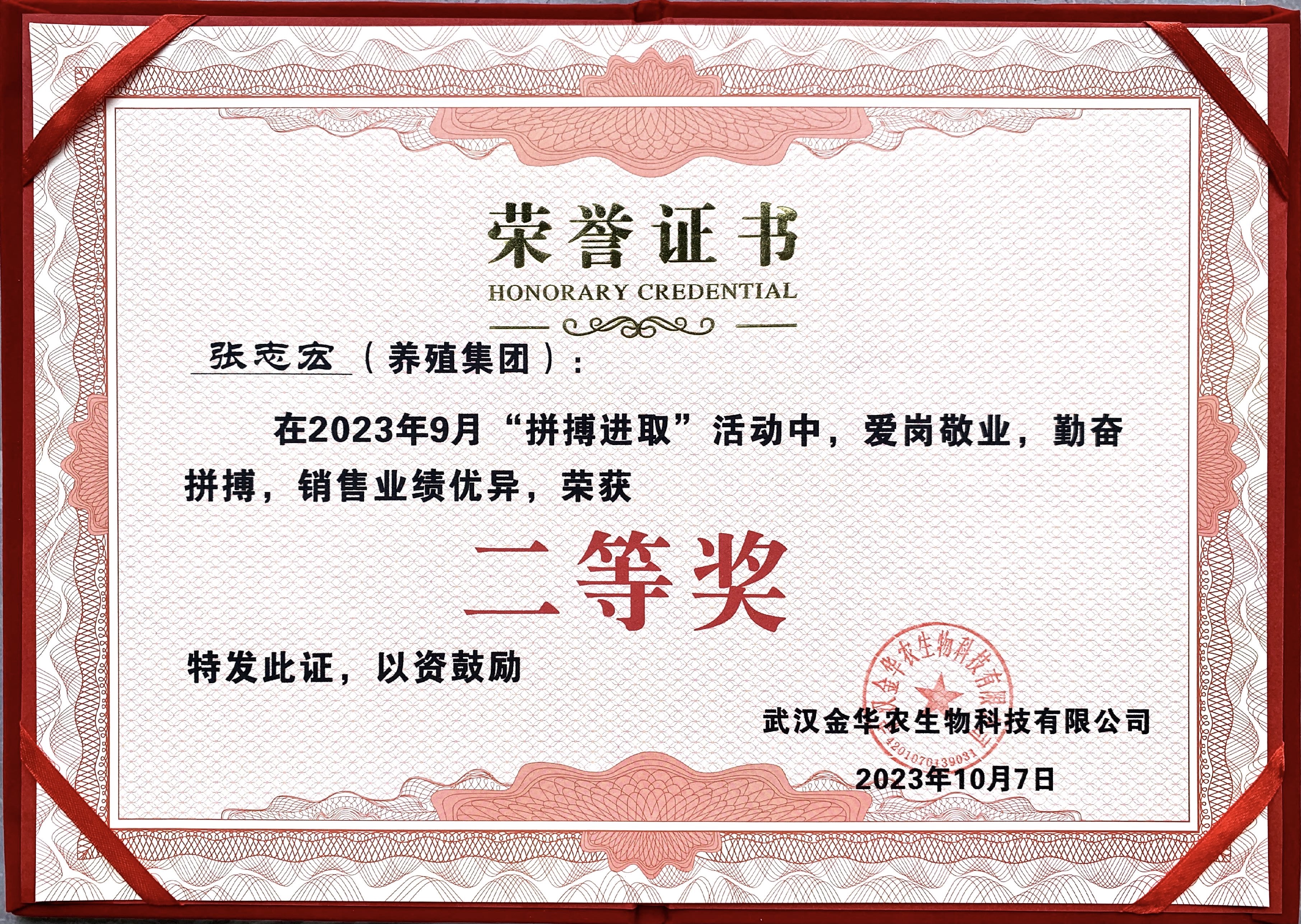 祝賀集團(tuán)化養(yǎng)殖客戶張志宏經(jīng)理在2023年“拼搏進(jìn)取”活動中榮獲二等獎。2023業(yè)績有望突破500萬!合作創(chuàng)造價值,互利成就未來。我們正經(jīng)歷著機(jī)遇與挑戰(zhàn)并存的養(yǎng)殖新時代,面對更加激烈的養(yǎng)殖生態(tài)環(huán)境和市場競爭環(huán)境,唯有真誠攜手,不忘根本,方可互利共贏。武漢金華農(nóng)將繼續(xù)加大在養(yǎng)殖端的服務(wù)投入,切實服務(wù)好養(yǎng)殖終端,深耕養(yǎng)殖服務(wù)平臺,提供客戶滿意度服務(wù),攜手行業(yè)同仁,真誠合作,共創(chuàng)行業(yè)美好未來!