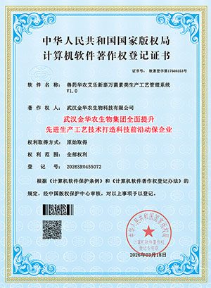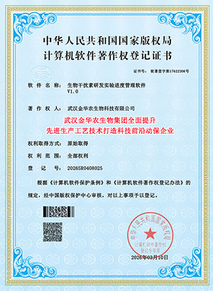 喜訊,2026年3月20日,武漢金華農(nóng)生物獲得國(guó)家頒發(fā)三項(xiàng)“先進(jìn)生產(chǎn)工藝技術(shù)”軟件著作版權(quán)保護(hù)專利證書(shū),公司在畜禽獸藥、水產(chǎn)漁藥、飼料添加劑等板塊,2026年全面提升生產(chǎn)工藝技術(shù),應(yīng)用先進(jìn)生產(chǎn)技術(shù),干擾素包膜技術(shù),超微粉碎技術(shù),微晶顆粒旋轉(zhuǎn)技術(shù),長(zhǎng)效緩釋技術(shù),通過(guò)新的生產(chǎn)工藝和生產(chǎn)技術(shù)發(fā)明專利,進(jìn)一步增強(qiáng)畜禽獸藥和水產(chǎn)動(dòng)保的療效!打造前沿科技創(chuàng)新領(lǐng)導(dǎo)品牌!