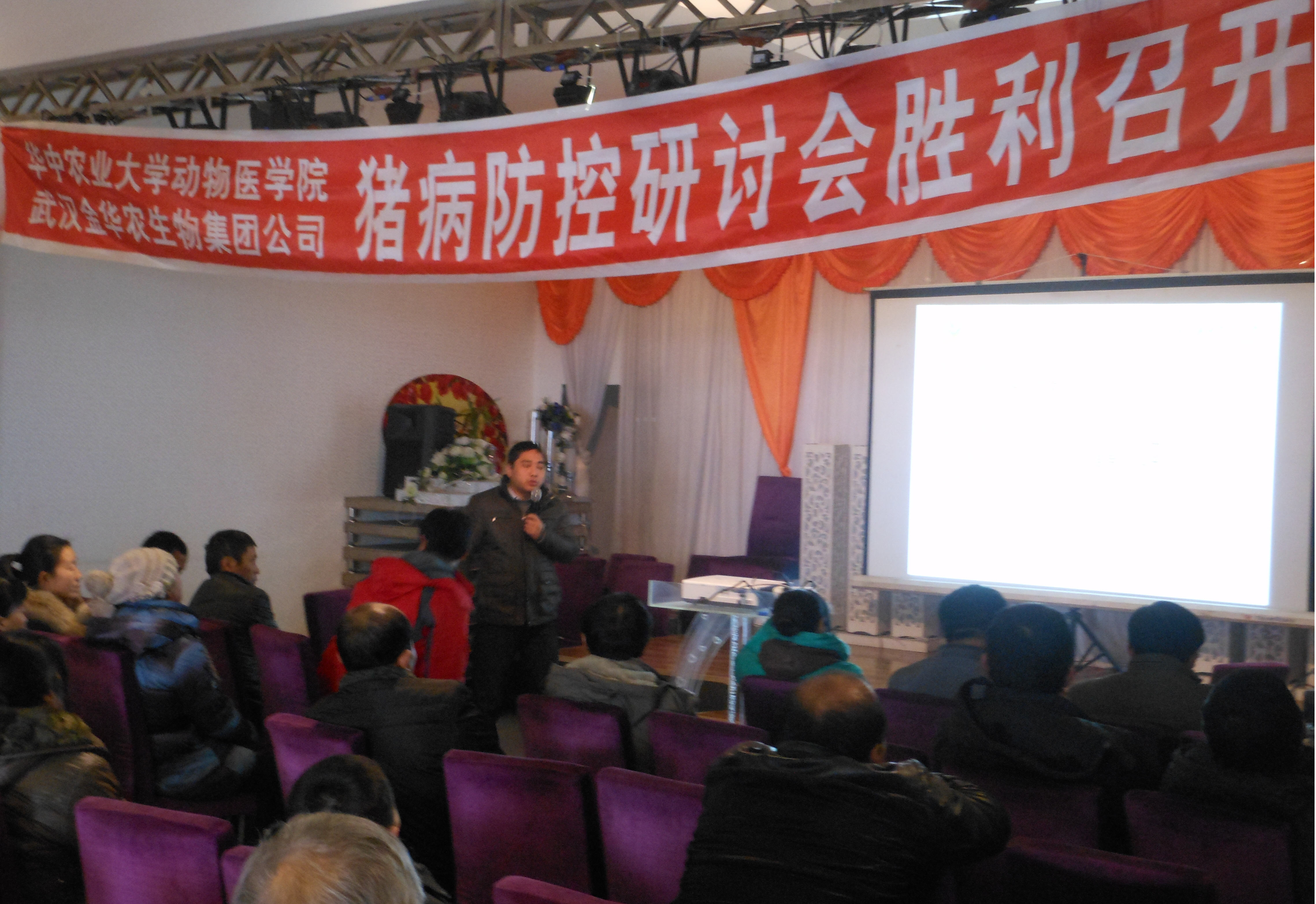 公司技術(shù)部胡老師首先對廣大養(yǎng)殖戶高度肯定金華農(nóng)產(chǎn)品的質(zhì)量和療效表示感謝,對他們選擇使用金華農(nóng)優(yōu)質(zhì)動保放心產(chǎn)品表示歡迎,并闡明公司將會生產(chǎn)出更多優(yōu)質(zhì)、高效、綠色的產(chǎn)品來回報廣大用戶,公司技術(shù)部將加大市場服務(wù)力量,聯(lián)合華中農(nóng)業(yè)大學(xué)動物醫(yī)學(xué)院專家教授,確保和幫助養(yǎng)豬戶解決困難,防控疫病發(fā)生。