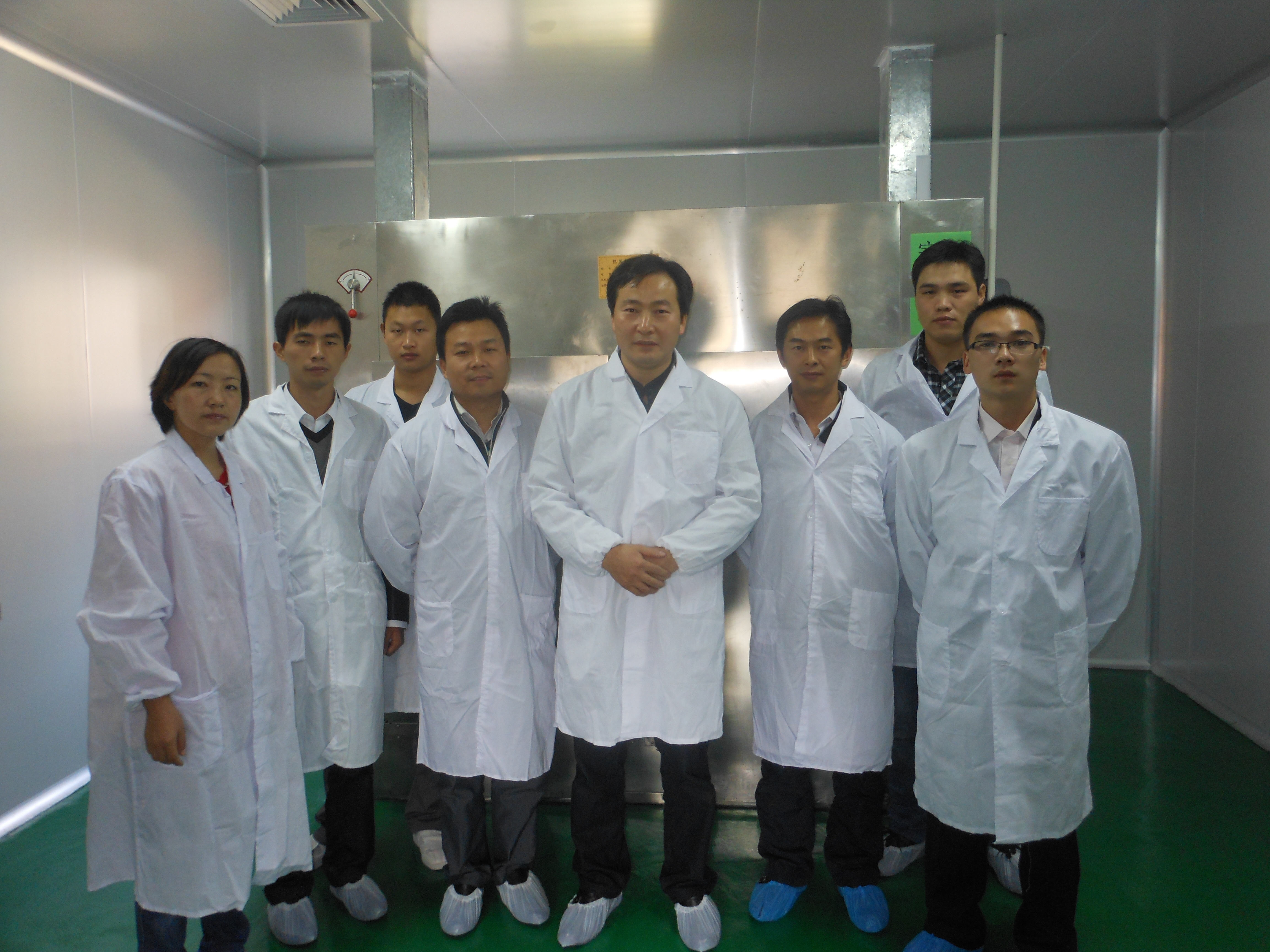主要參會(huì)人員在公司GMP生產(chǎn)車間合影留念