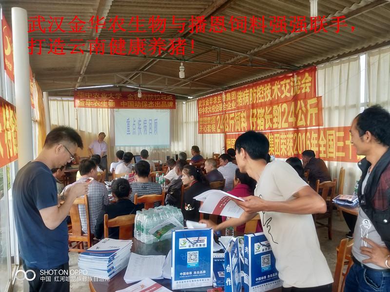2018年6月25日,武漢金華農(nóng)生物制藥與云南播恩飼料集團,強強聯(lián)手,戰(zhàn)略互信,友好合作,互惠雙贏,服務廣大省內(nèi)畜牧養(yǎng)豬戶,打造云南健康養(yǎng)豬生態(tài)產(chǎn)業(yè)鏈第一品牌!武漢金華農(nóng)生物集團聯(lián)合華中農(nóng)業(yè)大學豬病權威專家教授,結合云南養(yǎng)豬地域性的實際情況,于本月25日、28日、30日,連續(xù)舉辦3場送“科技下鄉(xiāng)豬病研討會”,打造云南養(yǎng)豬特色服務產(chǎn)業(yè)生態(tài)鏈條,為廣大養(yǎng)豬戶排憂解難,為廣大養(yǎng)豬戶保駕護航!