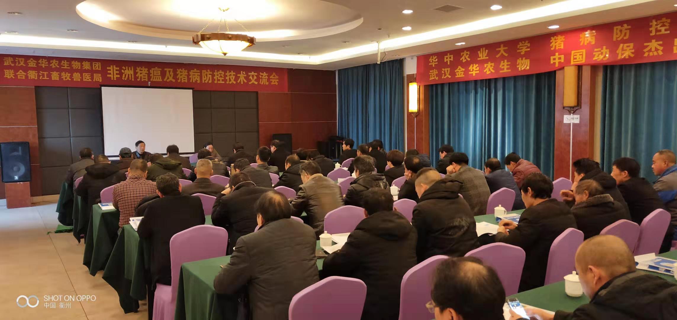 2019年3月3日,武漢金華農(nóng)生物集團(tuán)“第3場”《非洲豬瘟暨春季豬病防控研討會 》在浙江衢江地區(qū)勝利召開!本次會議受到浙江衢江畜牧局的大力支持與高度肯定!聽課豬場人數(shù)70多人,會議達(dá)到預(yù)期目的,豬病知識授課圓滿,養(yǎng)豬戶學(xué)習(xí)積極認(rèn)真。公司市場運營部郭昌盛老師參加本次會議,技術(shù)部吳志良老師負(fù)責(zé)主講,大區(qū)負(fù)責(zé)人張志龍經(jīng)理負(fù)責(zé)組織與策劃。